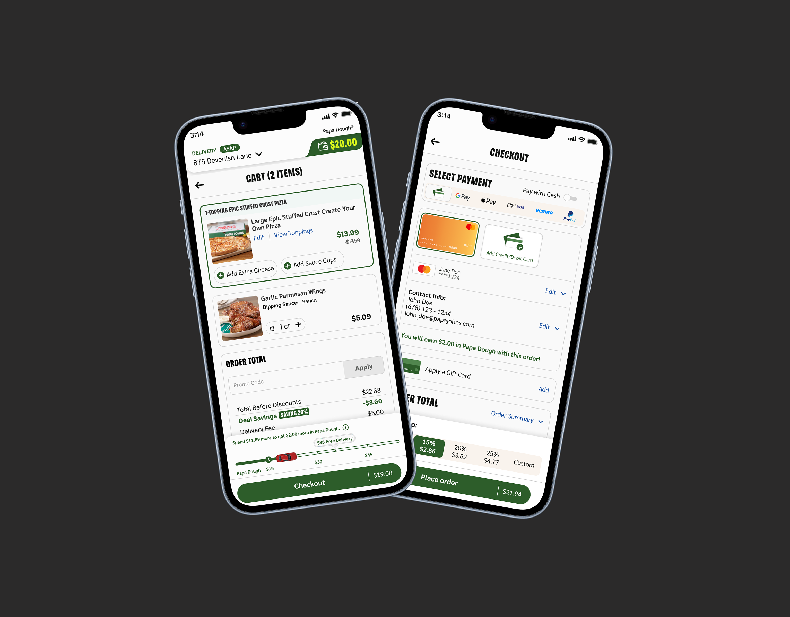 Papa Johns' Cart & Checkout